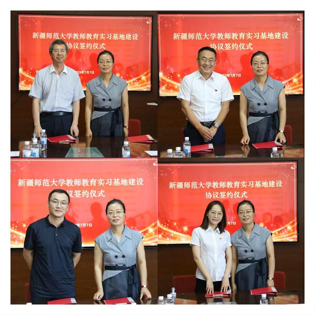在出席来宾的见证下,中国语言文学学院副院长沈维琼依次与克拉玛依市第一中学校长陈冬、克拉玛依市高级中学校长孙延宾、克拉玛依市第九中学校长钱亮亮、克拉玛依市第十六中学书记杨水仙签订了合作协议。