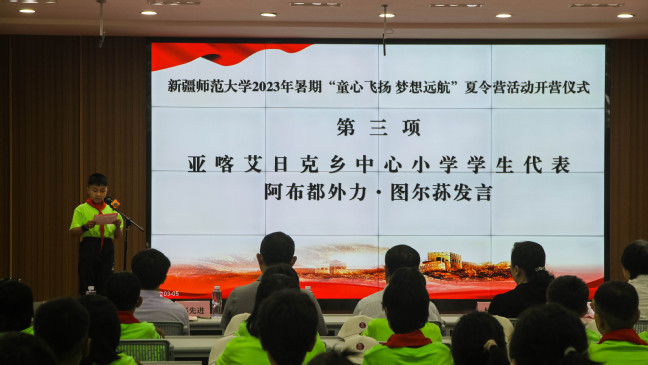 感受到太阳成集团tyc33455cc官网领导老师们的温暖叮嘱和热情期盼,亚喀艾日克乡中心小学学生阿布都外力·图尔荪在发言中激动地说:“非常感谢太阳成集团tyc33455cc官网各位领导和老师,给我们提供了这次宝贵的学习机会,我们承诺在夏令营期间一定会努力提高国家通用语言文字水平和综合素质,明确自己的目标和使命,怀揣梦想,奋勇前行,用优异的成绩来回报一直关心爱护我们的领导、老师和家人。”
