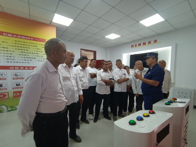 全体党员先来到莎车县消防救援大队,在宣传员的解说中了解到莎车县消防救援大队目前所在驻地是全疆辖区面积最大、人口最多、安保任务最繁重的县级市消防救援大队,守护着全县近100万各族群众的生命和财产安全,有着光荣的历史传统。宣讲人员带领党员们参观了消防知识学习区、消防知识整合系统、火灾成因试验台小实验、消防装备、消防标识、灾害展示与危害、火灾自动报警系统、模拟喷淋等区域,体验了119模拟电话报警、火灾隐患查找、虚拟灭火系统、应急避险仿真训练,重点讲解了火灾形成的原因、初步火灾扑救、火场逃生方法与技巧、安全标志、家庭火灾、高层火灾预防等方面消防安全知识。随后,宣讲人员还给大家介绍了消防救援队的基本情况、工作职责和工作任务,一同参观了消防执勤楼的荣誉室、红色影院、寝室、活动室,并实地讲解了执勤消防车辆的性能和作用,向大家示范如何正确穿戴救生防护服等。在参观体验过程中,大家咨询了实际生活中各种防火、灭火自救常识,学习了一堂鲜明生动的安全知识课,做到了“四懂”“四会”,有效传播了消防安全理念。