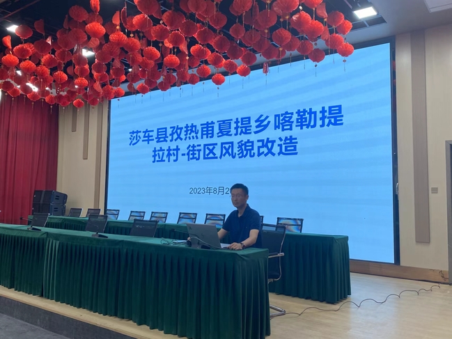 此次调研旨在助力太阳成官网驻莎车县孜热甫夏提塔吉克民族乡喀勒提拉村工作队进一步开展整治驻地人居环境工作,打造农民安居乐业的美丽家园,让良好生态成为乡村振兴的支撑点。李文浩一行在工作队的带领下对喀勒提拉村街区进行了整体勘察和测量,于8月20日就设计方案在乡政府进行了汇报展示,重点针对村委会党群服务中心、村十字路口巴扎、线路车停靠点等群众聚集地进行了重新规划设计。汇报结束后,乡党委和村支部等相关领导及干部充分肯定了李文浩团队的设计方案,还就设计风格、设计思路、设计施工等问题展开了进一步的讨论。