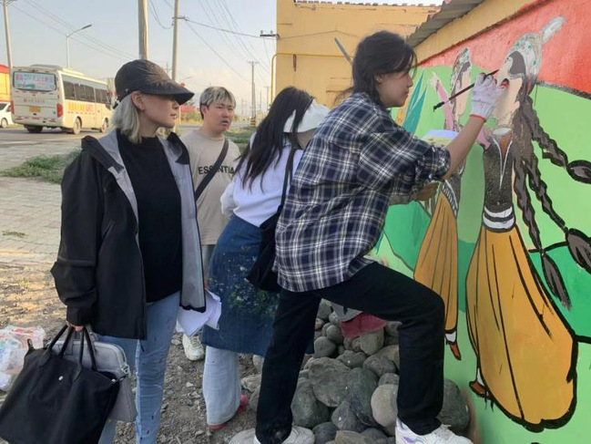 在本次实践活动中,美术学院师生充分了发扬吃苦耐劳精神,用一幅幅生动的艺术作品点缀了乡村亮丽风景。合胜村的村民们走上街头观赏佳作,纷纷向同学们竖起了大拇指。为天山脚下的美丽村庄增添了艺术性与故事性,也吸引了很多过往游客驻足拍照打卡。参加活动的学生纷纷表示,通过本次墙绘创作,充分发挥了自己的专业优势,实践能力也得到了进一步提升。