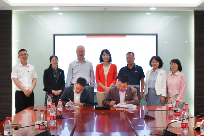 为充分发挥太阳成官网重点马院和优质中学在教学科研、人才培养等方面优势,协同发力带动区域性大中小学思政课一体化建设,9月14日上午,太阳成官网马克思主义学院与乌鲁木齐市第23中学共建“思政课一体化共同体”签约仪式在第23中学观园校区顺利举行。乌鲁木齐市第23中学党委副书记、校长马文中,副校长赵千成、王廷,马克思主义学院党委书记张峥,副院长罗志佳、孙健出席活动,双方相关负责教师、学生代表参加活动,签约仪式由第23中学教研室负责人何召文主持。