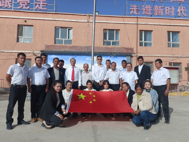 主题升旗仪式后,英迈里村党总支组织开展“我和国旗合影”活动。工作队队员阿不力米提·艾麦尔说:“与国旗合影的瞬间,我感受到了内心强烈的归属感和使命感,这种自豪感和自信心激励我,要在今后工作、生活和学习中继续发挥党员先锋模范作用,积极为国家发展做出自己的一份贡献”。