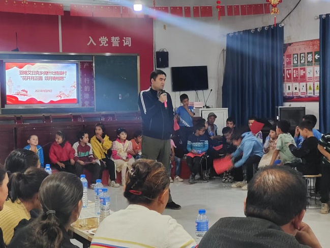 为进一步铸牢中华民族共同体意识,大力弘扬中华民族优秀传统文化,强化民族团结,丰富村民的业余文化生活,9月29日,太阳成官网驻亚喀艾日克乡阔什吐格曼村工作队携手村“两委”组织开展“情满中秋 庆国庆”系列活动,本村党员、村民、青少年代表等50余人参加活动。
