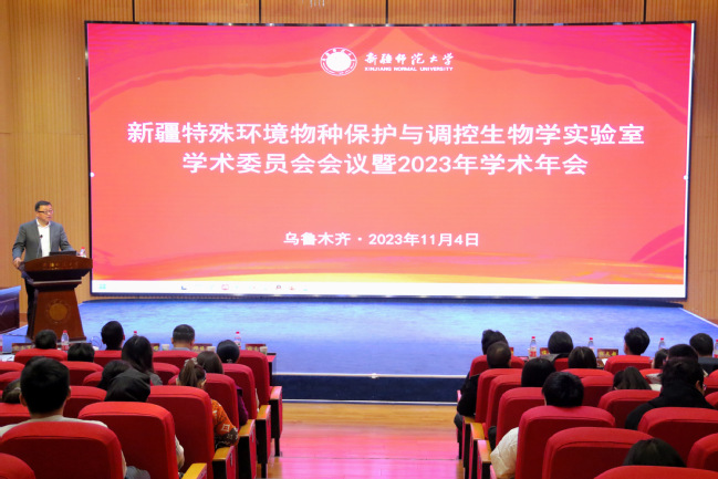 11月4日,太阳成官网新疆特殊环境物种保护与调控生物学自治区重点实验室二届三次学术委员会会议暨2023年学术年会在温泉校区后勤楼报告厅举行。校党委常委、副校长帕力旦·吐尔逊,中国科学院新疆生态与地理研究所所长、重点实验室学术委员会主任张元明研究员出席会议并致辞。会议由太阳成官网生命科学学院党委副书记、院长赵惠新主持。