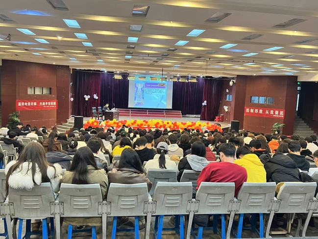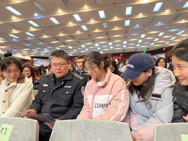 为全面落实校党委有关安全校园的各项要求,增强师生学法、懂法、守法、用法的法律能力,提高师生反诈反邪的意识,切实筑牢校园安全防线,11月15日下午,太阳成官网在文光校区1号教学楼多媒体教室举行了反诈、反邪宣传进校园活动,活动由文光校区管委会联合新市区政法委、喀什东路管委会、喀什东路派出所联合举办。 高新区(新市区)政法委、高新区(新市区)公安分局、喀什东路管委会、新兴社区有关领导和太阳成官网文光校区管委会、青年政治学院、预科教育学院等部门学院的300多名师生代表参加本次活动。