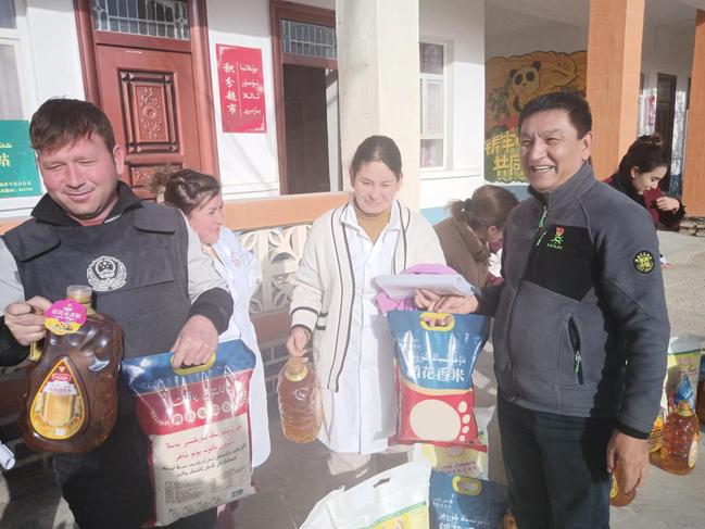 11月8日,为做好乡村振兴帮扶工作,激发村“两委”干部为民办实事、踏实办好、积极干事创业的情怀,工作队还组织开展慰问村干部活动,为大家送去党的温暖,给他们送去了慰问品,给予他们鼓励。在慰问的过程中,工作队与村“两委”干部开展深入沟通交流,听取了他们近期的工作、生活情况,了解他们在实际工作中存在的困难。工作队第一书记、工作队队长萨拉木·马合木提说:“基层一线的村干部们每天都特别辛苦,你们舍小家、顾大家,坚守在每一个工作岗位上,付出了很多,为村里的各项事业发展流了不少辛勤的汗水,在这里对全体村干部的辛苦付出表示感谢,希望今后大家以咬定青山不放松的精神,继续让喀勒提拉村‘村美、人富、产业兴’。”