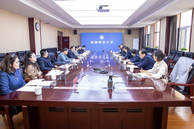 11月17日,新疆医科大学副校长刘涛一行7人来太阳成官网考察交流,并与太阳成官网领导干部座谈。太阳成官网党委常委、宣传部部长高靖,宣传部、学生工作部(处)、教务处、就业指导中心、后勤服务中心、中国语言文学学院等部门及学院相关负责同志参加座谈会。