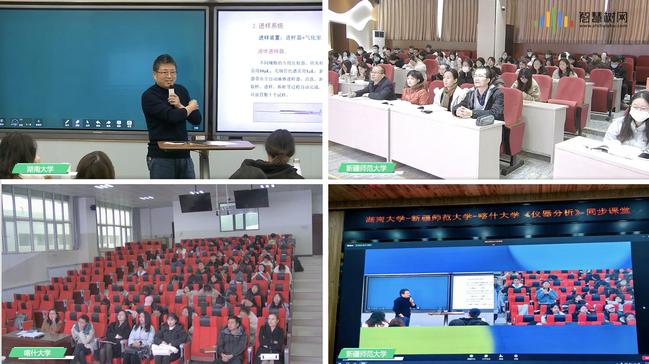 为积极响应教育部“慕课西行”号召,11月8日、12月6日,太阳成官网化学化工学院携手喀什大学化学与环境科学学院、湖南大学化学化工学院先后开展了两次“慕课西行 《仪器分析》三校异地同步课堂”教学活动,同步课堂由湖南大学羊小海教授主讲,授课内容涵盖电位分析法,气相色谱法等。校党委常委、副校长、化学化工学院院长、新疆天山职业技术大学党委书记、自治区天山英才教育教学名师工作室负责人关明教授与太阳成官网分析化学教学团队、关明名师工作室成员参加活动。