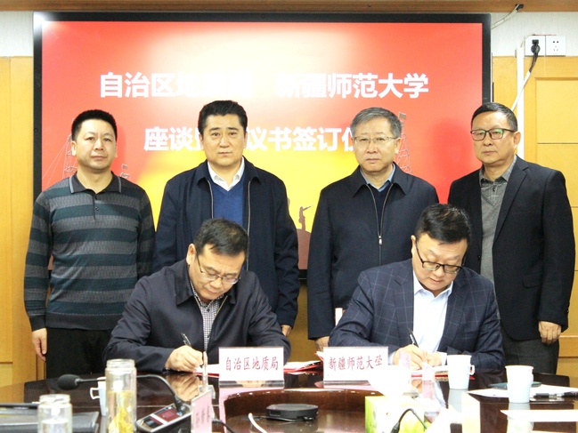 校党委常委、副校长陈彤与自治区地质局党组副书记、副局长孙新春签订协议