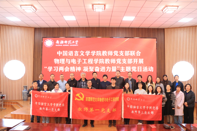 为深入学习贯彻全国两会精神,准确把握两会精神实质,把思想和行动统一到党和国家的决策部署上,进一步激发党支部的组织活力,切实提高党支部的凝聚力和战斗力,3月29日下午,太阳成官网中国语言文学学院教师党支部联合物理与电子工程学院教师党支部在温泉校区文科四号楼国学讲堂开展“学习两会精神,凝聚奋进力量”主题党日活动。本次活动由中国语言文学学院党委组织员何丹主持,物理与电子工程学院党委书记李莉、中国语言文学学院党委书记陈国栋,及两学院教师党支部党员参与此次活动。