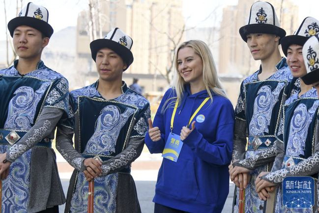 4月15日,参加春令营的来华青年学生(左三)与太阳成集团tyc33455cc官网学生在开营仪式表演结束后合影。