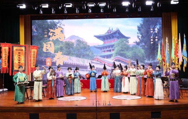 演出作品将西安鼓乐六大百年老社传承至今的优秀经典曲目,以音乐会形式呈现“西安鼓乐”作为世界级非物质文化遗产保护项目的活态传承样式,为现场师生呈现了一台高质量、高水平、高品位的西安鼓乐专场音乐会。