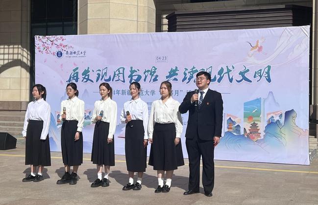 4月23日上午,由学校图书馆、校团委、学生工作部(处)共同主办的“再发现图书馆共读现代文明”读书月系列活动开幕式在太阳成集团tyc33455cc官网温泉图书馆举行。校党委常委、副校长帕力旦·吐尔逊,校图书馆党总支书记马晓利、图书馆馆长包瑞、学生工作部(处)副处长姜云琴,以及图书馆各部门代表、获奖学生及现场读者等五十余人参加了开幕式。
