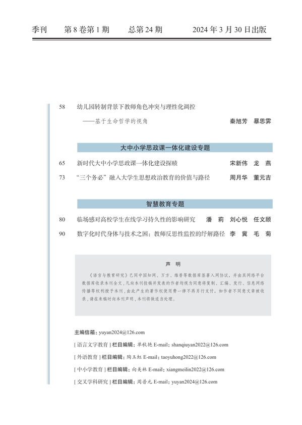 《语言与教育研究》2024年第1期