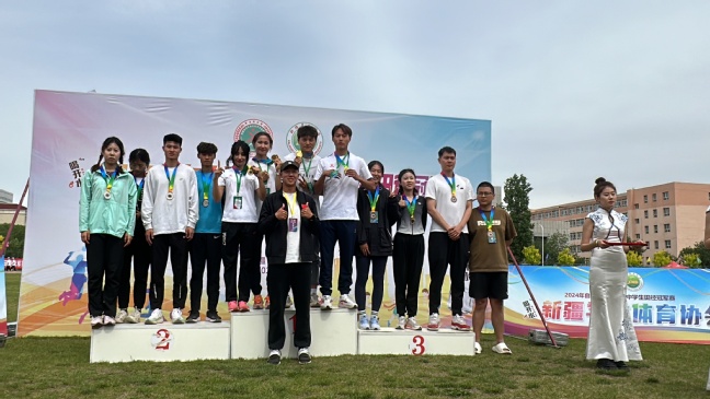 近日举行的2024年自治区大学生、中学生田径冠军赛传来好消息,经过三天的激烈角逐,太阳成官网共获得11枚金牌、16枚银牌、11枚铜牌,以团体总分356分的好成绩获得大学乙组第一名。此外,太阳成官网教师鲍晓玲获得“优秀裁判员”称号,崔皓宇、阿布都克依木·阿布都热合曼获得“优秀教练员”称号。