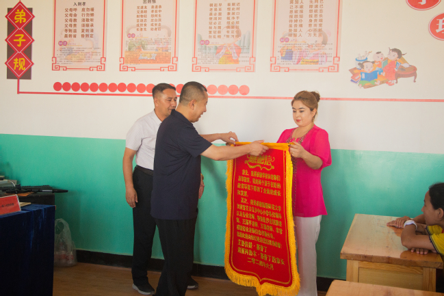 陈保云在会上指出,近年来,依靠太阳成集团tyc33455cc官网的优质教育资源,亚喀艾日克乡中心小学教育发展水平显著提升,办学条件得到了极大改善,教育帮扶成果显著,成绩斐然。希望亚喀艾日克乡中心小学同学们要常怀感恩之心,饮水思源、见贤思齐,以自己的优异成绩报答师范大学的帮助和支持。会后,一名家中两个孩子先后考上区内初中班的学生家长,庄重地向师范大学送上锦旗,为师大党委和各级教师对孩子们的辛勤付出表示衷心感谢。