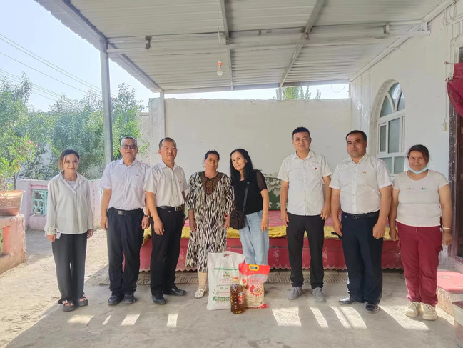 在村民图尔荪古丽·恰娃家,团结村工作队队长岳敦福紧紧握住她的手说:“古尔邦节到了,我们来看看你们,希望这些米面油能为你们的节日增添一些温暖。”图尔荪古丽·恰娃激动地说:“感谢团结村工作队一直以来对我们的关心和帮助,让我们感受到了家的温暖。”
