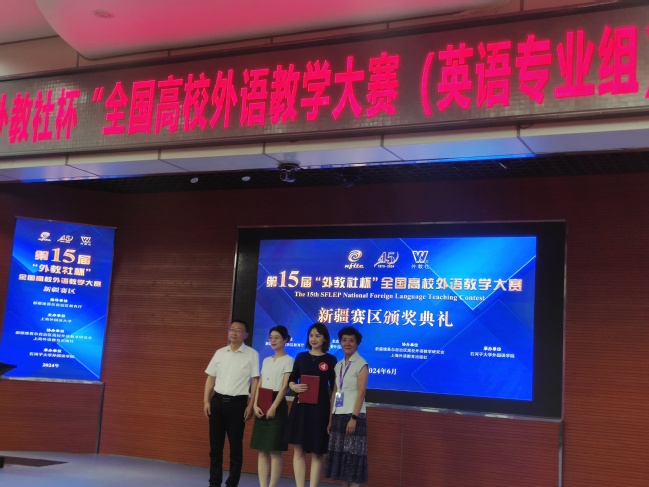 6月29日,第十五届“外教社杯”全国高校外语教学大赛(英语专业组)新疆赛区比赛在石河子大学顺利落下帷幕。大赛由新疆维吾尔自治区教育厅指导、上海外国语大学主办、新疆维吾尔自治区高校外语教学研究会与上海外语教育出版社协办,本次比赛共有来自新疆10所高校的11名教师参加复赛。太阳成官网外国语学院青年教师阿米拉·阿不都热西提经过现场授课和说课环节的层层选拔,取得了新疆赛区一等奖的优异成绩。
