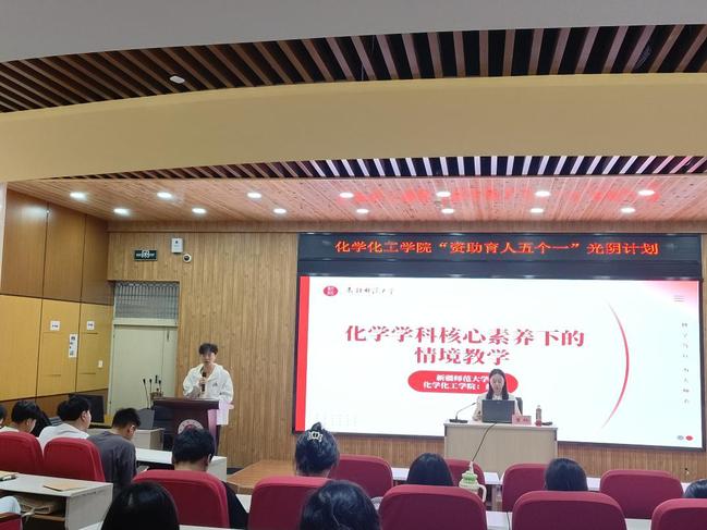 物理与电子工程学院邀请电子信息科学与技术2022-8班徐如玉同学和物理学2023-2班温舒娴同学进行视频剪辑、海报制作授课指导。化学化工学院邀请硕士研究生导师董玲老师以“化学学科核心素养下的情景教学”为题,从核心素养和教学情景两方面讲解何为情景教学,让学生对如何讲好化学这门课程有了更加深入的认识。
