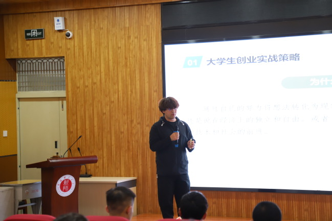 地理科学与旅游学院、生命科学学院、计算机科学技术学院邀请自治区优秀创新创业指导教师、创新创业项目优秀学生代表,从创新创业大赛的重要意义,国家、自治区及学校创新创业计划赛事介绍和备赛经验、技巧及注意事项等方面为同学们进行了认真讲解,通过具体的案例分析和深入的思考,向同学们展示了如何将理论知识转化为实践能力,如何在创新创业中不断突破自我。
