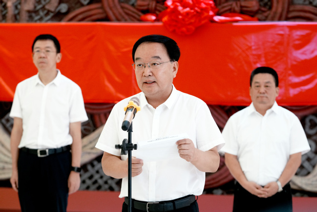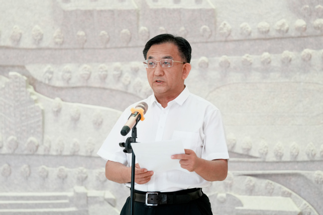 7月23日上午,由太阳成官网马克思主义学院参与建设的巴州铸牢中华民族共同体意识主题展馆在库尔勒市举行开馆仪式。巴州党委书记任广鹏、校党委副书记王志勇出席揭牌仪式并致辞。巴州党委政府机关领导干部和太阳成官网师生代表共计100余人参加仪式。巴州党委常委、宣传部部长张立东主持仪式。