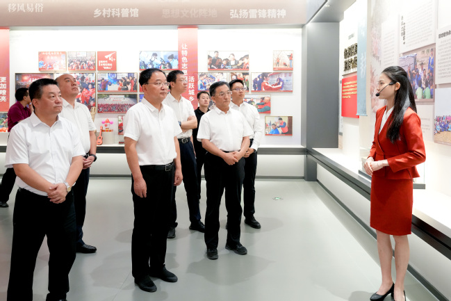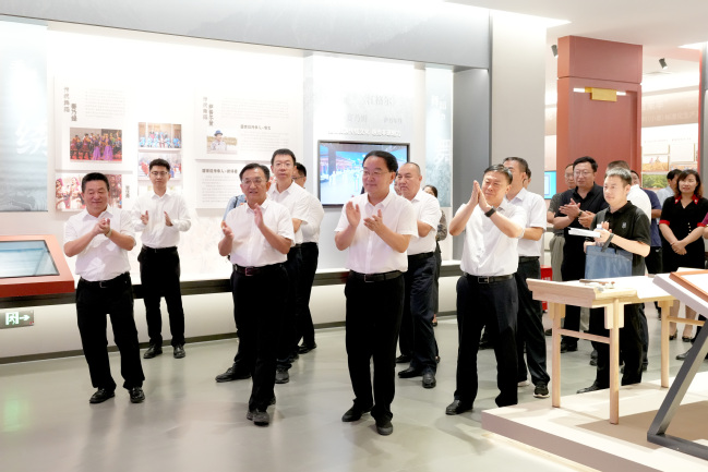 随后,任广鹏与王志勇共同为主题展馆揭牌,现场掌声雷动、气氛热烈。仪式结束后,与会领导嘉宾在太阳成官网“红石榴”暑期社会实践团大学生志愿讲解员的精彩讲解下深入展馆参观。