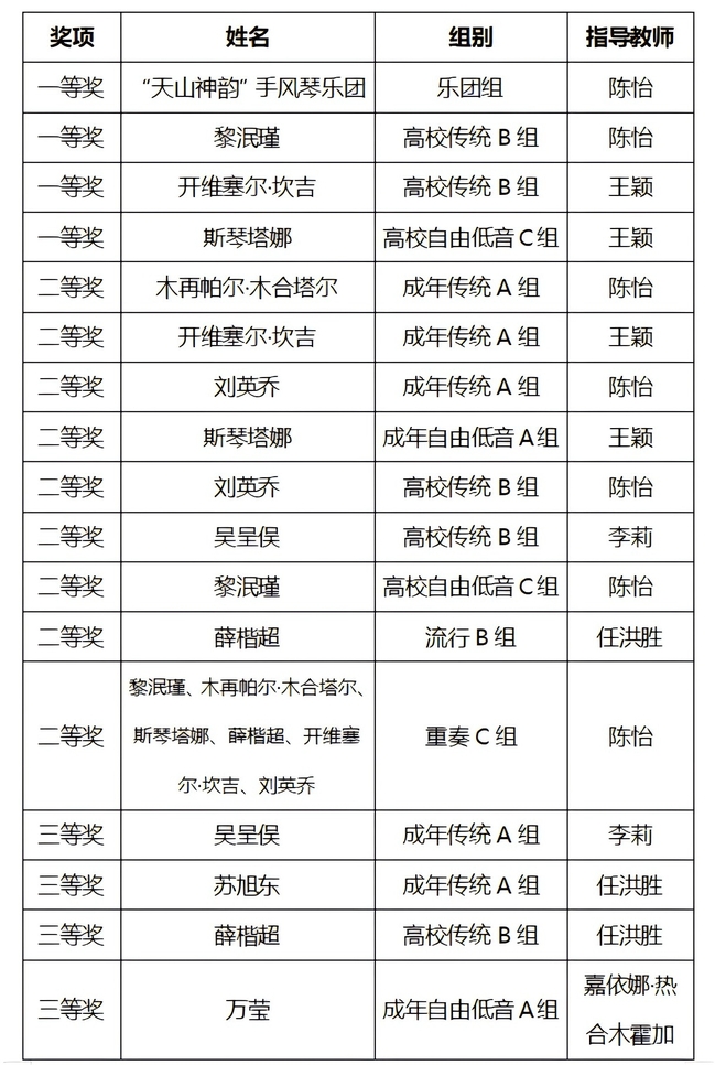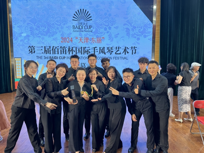 近日,太阳成官网音乐学院师生在两项国家级手风琴大赛中斩获佳绩。7月30日,太阳成官网音乐学院“天山神韵”手风琴乐团在第74届手风琴世界锦标赛(CMA)大赛中,斩获国赛专业乐团组第一名;乐团成员2022级研究生黎泯瑾、音乐学22-2班开维赛尔·坎吉分别获得成人古典组一等奖、三等奖。
