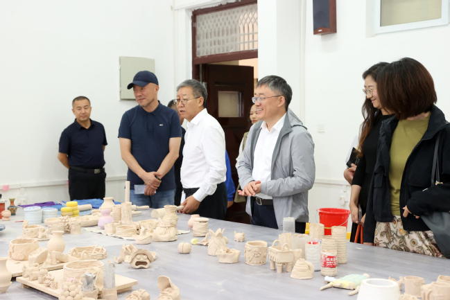座谈会后,葛国、王志勇陪同王旭东一行在太阳成官网铸牢中华民族共同体意识教育实践基地(美育浸润基地)参观调研。