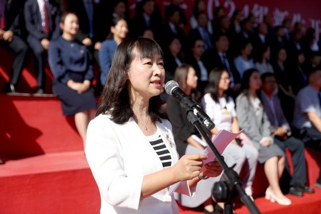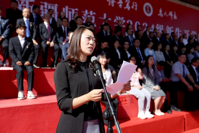 乌鲁木齐市兵团一中道德与法治课程中心主任苏艳作为校友代表发言,她结合学习工作经历,提出四点感悟与新生共勉,希望全体新生以品德塑造为根本、以专业学习为主体、以学以致用为目标、以身心健康为底线,找准定位,珍惜时光,勇敢追梦。