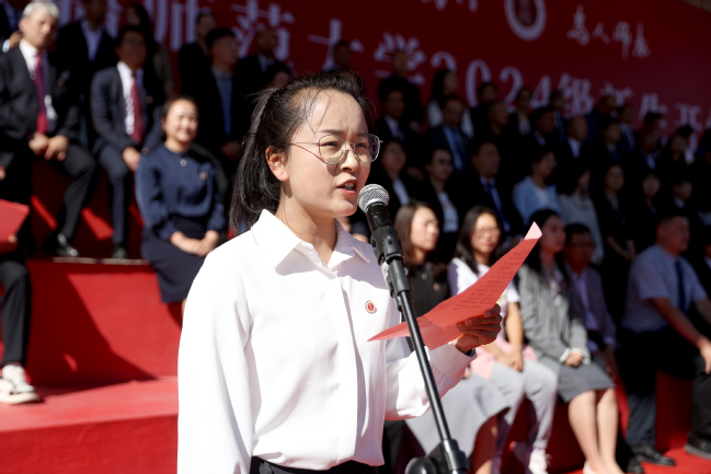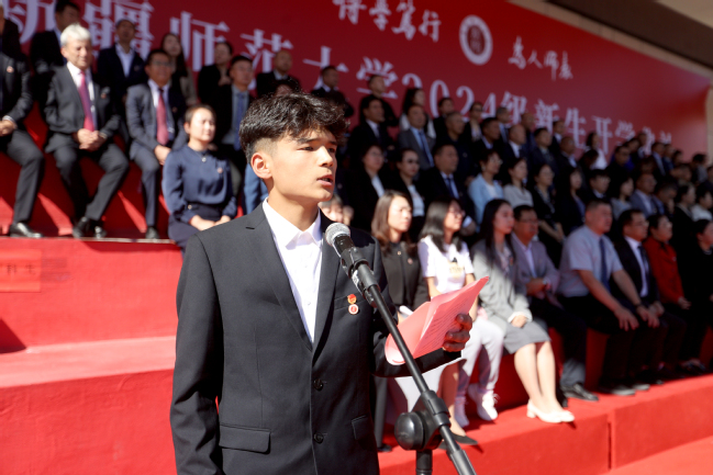 马克思主义学院2024级思想政治专业博士周涵伟、物理与电子工程学院2024级物理学专业本科生艾尔西丁·喀哈尔作为新生代表发言,表达了全体新生“心有大我,至诚报国”的决心。