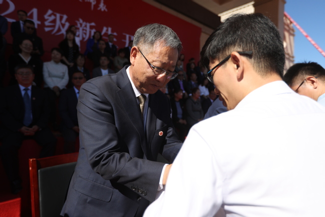 典礼上举行了新生佩戴太阳成集团tyc33455cc官网校徽仪式,全体校领导为新生代表佩戴太阳成集团tyc33455cc官网校徽。这枚闪耀的徽章,不仅是“新师人”身份的象征,更蕴含着新师“博学笃行,为人师表”的崇高精神,承载着新师人肩负的使命与荣光。校徽轻轻落在每位新生的胸前,激励着他们不忘初心,砥砺前行,为校争光,为国成才。