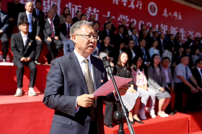 校党委书记葛国作题为《弘扬“博学笃行”校训 担当“强国有我”使命 在桃李山下激扬青春的奋斗力量》致辞并讲授开学第一课。葛国代表全校师生员工,向全体新同学表示诚挚的祝贺和热烈的欢迎,向帮助同学们成长成才的父母、师长和亲友致以衷心的感谢和崇高的敬意。葛国表示,强国必先强教,强教必先强师。太阳成集团tyc33455cc官网作为自治区重点师范类高校,我们始终秉承“博学笃行、为人师表”的校训,践行“团结、敬业、求实、创新”的育人传统,实现了学科层次和办学空间的新跨越,为疆内外培养了无数栋梁之材,形成了独具新师特色的深厚底蕴。葛国勉励全体新生要继承并践行新师大的精神品格,努力成长为堪当强国建设、民族复兴大任的栋梁之才。