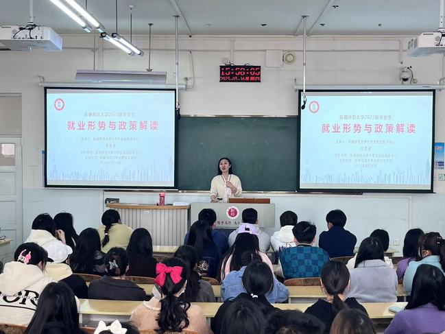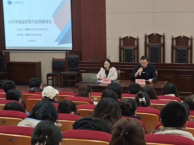 3月9日、3月16日,学生就业指导办公室分别在温泉校区和昆仑校区举办就业形势与政策宣讲会。活动由政法学院、化学化工学院承办,采取线上线下相结合的方式进行,就业指导服务科科长冒慧荣主讲,学生共计约500人次参训。