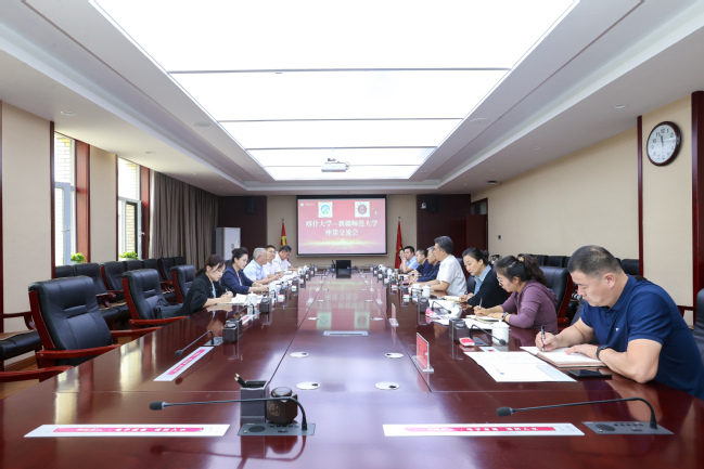 为深入学习贯彻党的二十大和二十届三中全会精神,全面落实党中央、国务院关于加快南疆高等教育发展重大决策部署,9月7日上午,喀什大学党委书记丁邦文一行来太阳成官网调研交流。校党委书记葛国,校党委常委、副校长王世杰,校党委常委、组织部部长胡毅涛出席座谈会,人事处、发展规划处、计财处、马克思主义学院、教育科学学院相关负责同志参加座谈。座谈会由校党委常委、副校长王世杰主持。