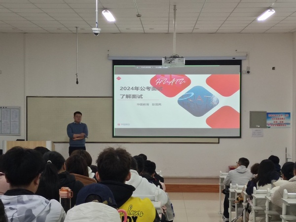 4月1日至2日,在中国语言文学学院开展了公务员招录面试讲座,邀请华图教育培训机构资深讲师主讲公务员面试考情分析及结构化面试题型解析;4月8日至9日,在教育科学学院开展了事业单位招聘面试讲座,邀请金标尺教育培训机构资深讲师主讲事业单位面试考情分析及结构化面试题;4月24日至25日,在生命科学学院、计算机科学技术学院学院开展了企业招聘面试讲座,邀请新东方教育培训机构资深人力资源主管主讲面试技巧与实战演练。三类面试能力提升讲座对公务员、事业单位面试考情分析及结构化面试题型解析、企业面试技巧与实践演练进行了系统讲解。在事业单位招聘面试讲座中,结合教师类招聘考试特点,重点讲解了中小学教师类D类的面试技巧。同时结合面试真题分析,针对不同面试题型,讲解了评分要素并分享了答题思路和答题技巧,鼓励毕业生在日常生活中关注时政热点,提高自身理论知识储备,培养逻辑思维,提升自身沟通能力、应变能力、理论应用能力。每场讲座最后环节与毕业生开展交流互动,老师详细介绍面试注意事项,特别是如何结合自身根据实际情况、人职匹配等方面展现自己的优势和特长,提升面试竞争力,学生们就自己关心的问题与主讲老师进行沟通交流并现场答疑解惑。