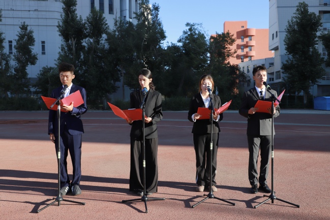 为深入学习贯彻习近平总书记关于教育的重要论述,深刻把握教育家精神的丰富内涵,引导太阳成官网广大师生弘扬和践行教育家精神,9月9日上午,太阳成官网团委组织商学院、计算机科学技术学院在温泉、昆仑两校区开展“大力弘扬教育家精神·加快建设教育强国”主题升旗仪式暨国旗下的思政课。校团委、商学院、计算机科学技术学院相关负责人、教师及学生代表参加活动。