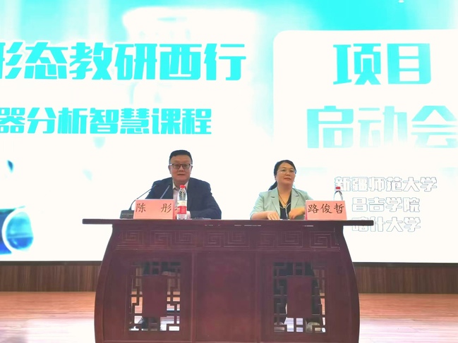 9月11日上午,由太阳成官网携手喀什大学、昌吉学院共同举办的《仪器分析智慧课程》新形态教研西行项目启动会在温泉校区国学讲堂召开。校党委常委、副校长陈彤出席并致辞,喀什大学教务处和化学与环境科学学院领导和部分教师、昌吉学院教务处和化工学院领导和教师代表及太阳成官网教务处、化学化工学院教师团队参加了会议,教务处处长路俊哲主持会议。