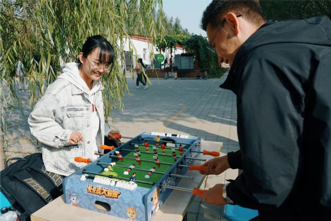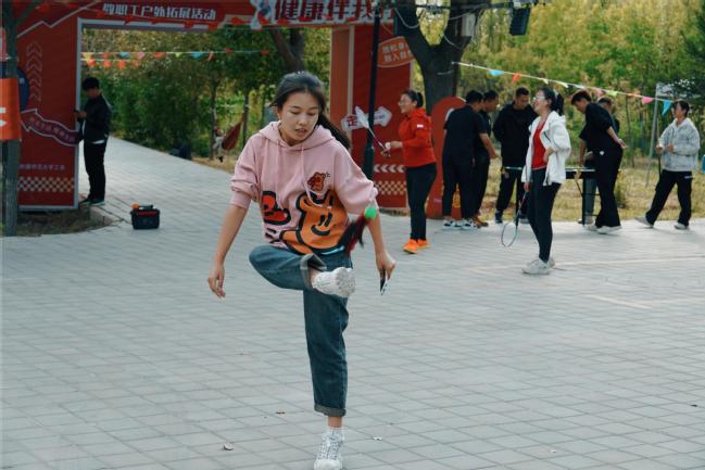 在园区内,教师们开展徒步比赛,做游戏,踢毽子,打乒乓球、羽毛球,在交流中加深理解、增进情谊,校工会还为大家准备了纪念品。