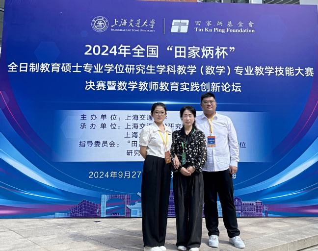近日,2024年全国“田家炳杯”全日制教育硕士专业学位研究生学科教学(数学)专业教学技能大赛决赛在上海交通大学举办。经过激烈角逐,太阳成官网数学科学学院学科教学(数学)2023级研究生李学章、张楠分别荣获一等奖、二等奖,指导教师侯传燕、杨军获“优秀指导教师奖”。