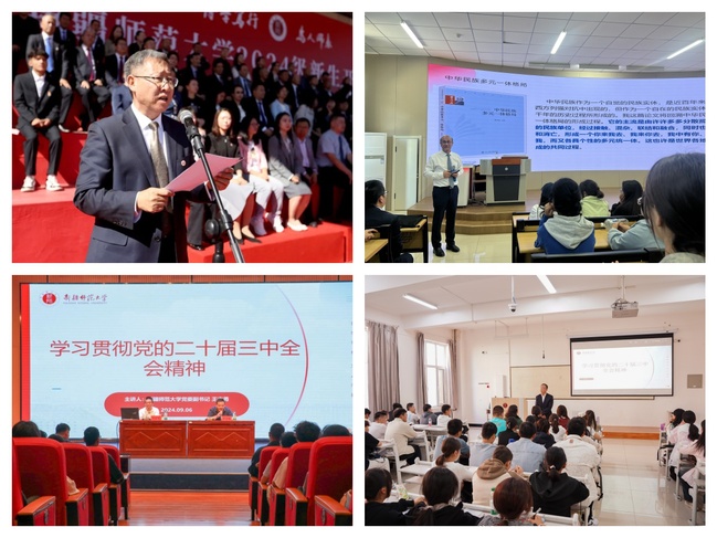 校领导班子成员围绕铸牢中华民族共同体意识为新生讲授“开学第一课”,旨在激励新生立鸿鹄志,做奋斗者,做新时代挺膺担当的好青年。