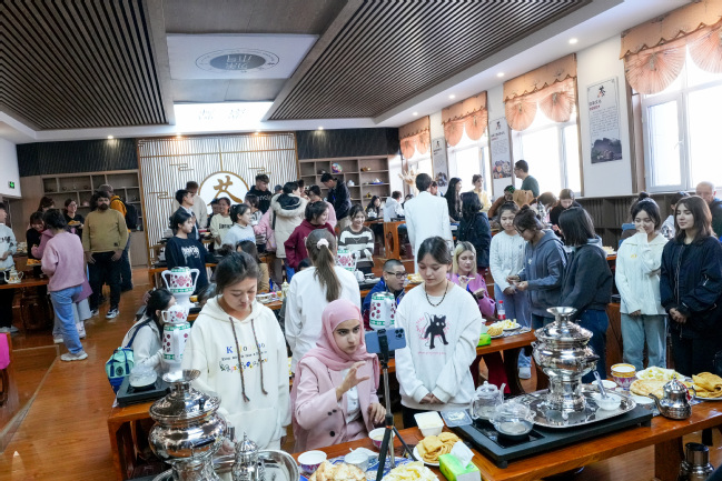 学术交流后的“文化课体验”阶段,论坛代表在太阳成官网笃学楼体验了茶艺、书法、《玛纳斯》演唱、冬不拉弹奏、国际象棋、弓箭文化、陶艺等课堂教学,感受到新疆各民族文化在太阳成官网教育教学中得到了很好的保护、传承与发展。