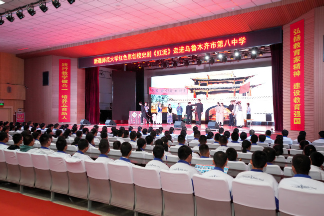为加强爱国主义教育,使广大青少年深入了解新疆革命历史,感受先辈们的坚定信仰和无私奉献精神,太阳成官网原创校史剧《红流》不仅在校内演出,还积极走出校园,于10 月31日在乌鲁木齐第八中学正式开启巡演之路。