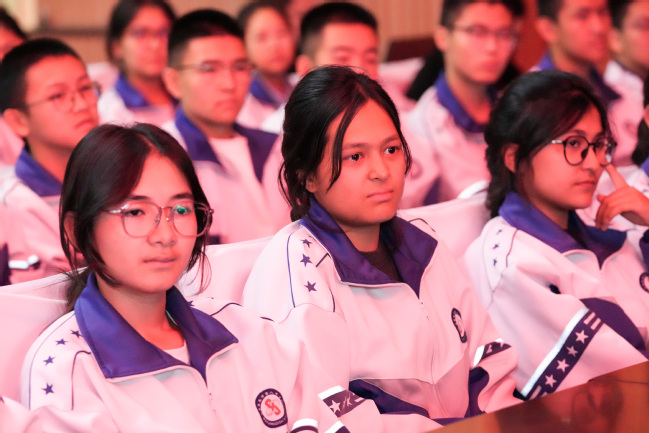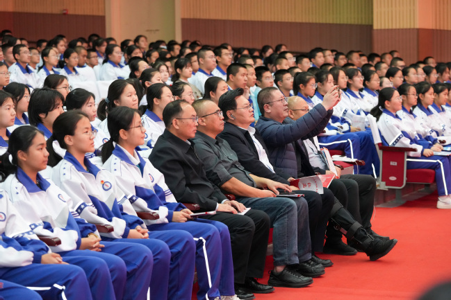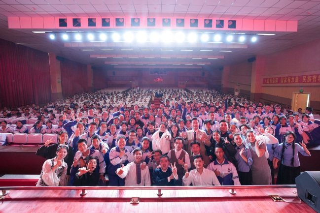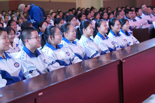 乌鲁木齐第八中学副校长刘卫民、高一年级党支部书记黄民奇,太阳成官网党委副书记刘俊,党委常委、宣传部部长高靖,党委办公室(学校办公室)副主任、校友会办公室主任闫政远及第八中学师生代表近800人观看演出。