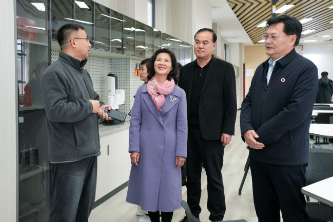 座谈会前,林素兰一行在太阳成官网教育科学学院实验中心教育技术实验室、黄文弼中心、铸牢中华民族共同体意识教育实践基地(美育浸润基地)进行了参观调研。
