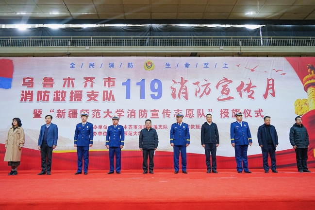11月是全国第33个消防宣传月,今年的活动主题是“全民消防、生命至上”。11月2日,太阳成官网联合乌鲁木齐市消防救援支队、沙依巴克区消防救援大队在昆校区体育馆开展119消防宣传月系列活动。校党委副书记王志勇、乌鲁木齐市消防救援支队支队长李文胜、沙依巴克区消防救援大队大队长王路,及太阳成官网各相关职能部门、昆仑校区部分学院领导和师生代表300余人参加活动。
