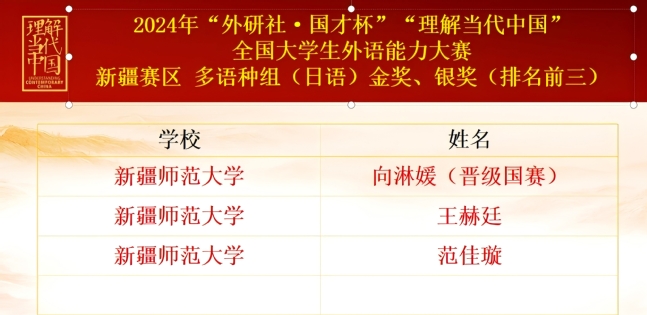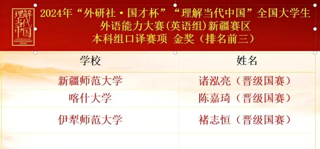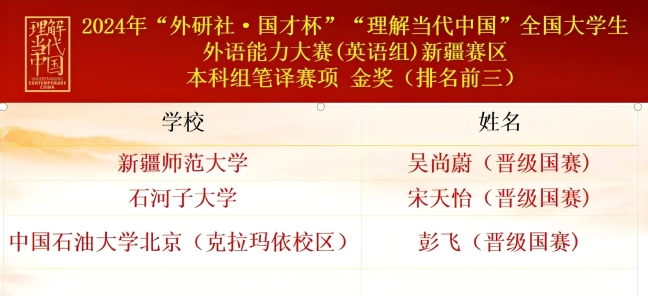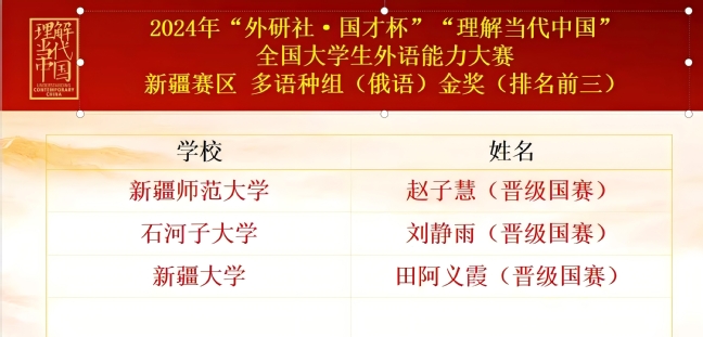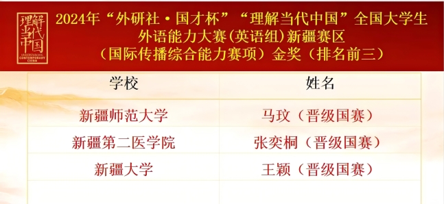 11月3日,“外研社·国才杯”“理解当代中国”全国大学生外语能力大赛新疆赛区复赛圆满落下帷幕。我校学子在本次大赛中凭借出色的表现斩获7项金奖、10项银奖和2项铜奖,充分展示了太阳成官网在外语教学和学生综合素质培养方面的卓越成效。