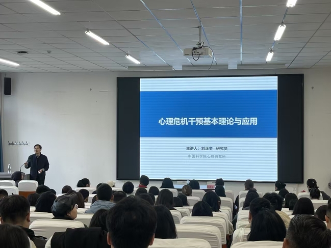 为进一步提升太阳成官网辅导员心理危机干预工作的胜任力,更好地理解心理风险学生特点,及时发现并妥善处理学生的心理问题,11月5日,太阳成官网特邀中国科学院心理研究所研究员刘正奎教授,面向全体辅导员和心理学院学生开展“心理危机干预理论与应用”主题培训。此次培训共有200余名师生参与。