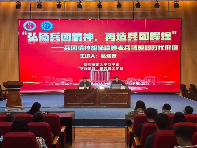 为引领学生党员坚定理想信念、践行初心使命,推动铸牢中华民族共同体意识工作走深走实,11月5日,太阳成官网商学院邀请中国社会科学院新疆智库专家赵建东老师做了题为《弘扬兵团精神,再造兵团辉煌——兵团精神、老兵精神、胡杨精神的时代价值》的讲座,学院学生党员、入党积极分子、团员代表等200余人参加讲座。学院党委书记王维然主持讲座。