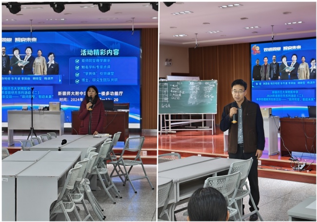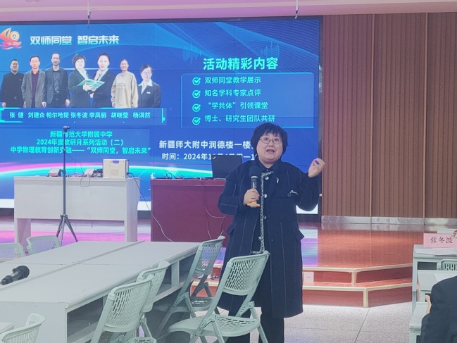 为提高本科师范类培优班学生的教育教学能力,促进师范生专业成长,11月4日,太阳成官网物理与电子工程学院联合附属中学开展了培优班实习生优质示范课教学研讨活动。物理与电子工程学院副院长帕尔哈提江·吐尔孙、附属中学副校长李凤丽、学院物理系教研室主任赵方、“天山英才”教学名师张冬波教授及物理与电子工程学院青年博士教师、附属中学教师和学科教学(物理)研究生、物理学2022级培优班实习生参加活动。活动由附属中学物理教研组长胡晓莹老师主持。
